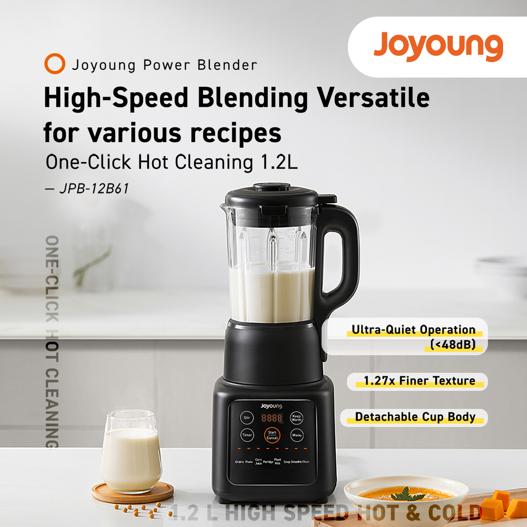 Upgrade your kitchen with the Joyoung JPB-12B61 – the best quiet, high-speed, multifunctional hot & cold blender for small households in Malaysia.